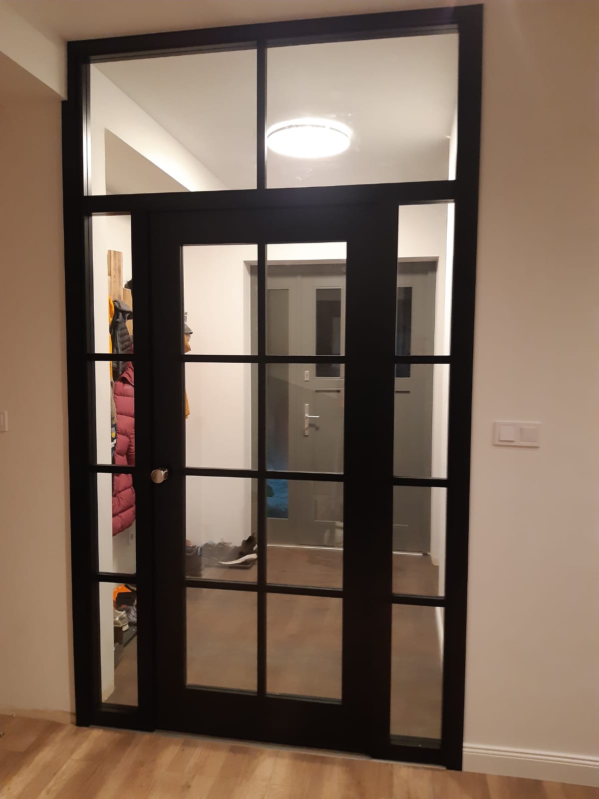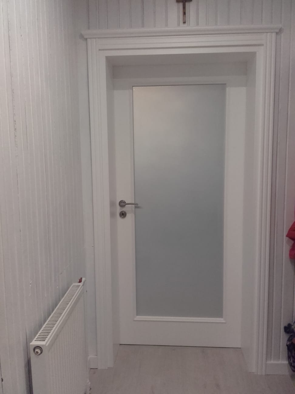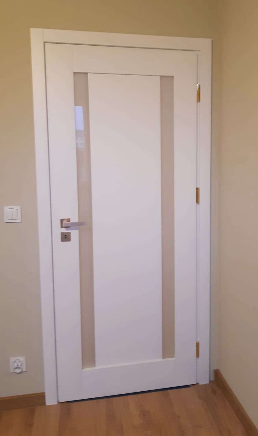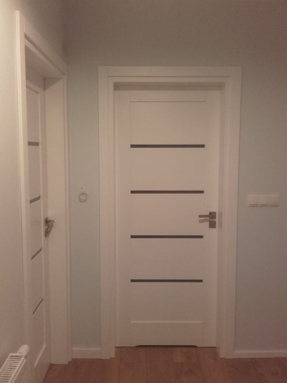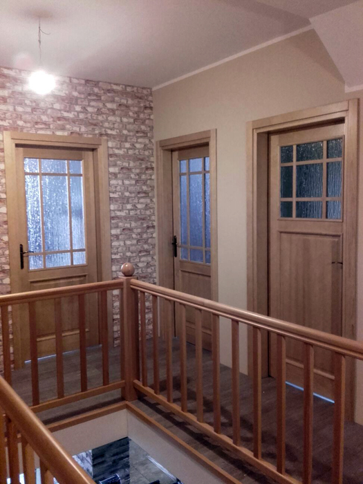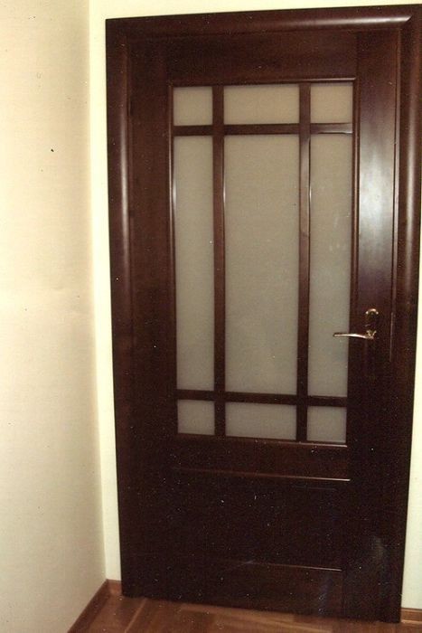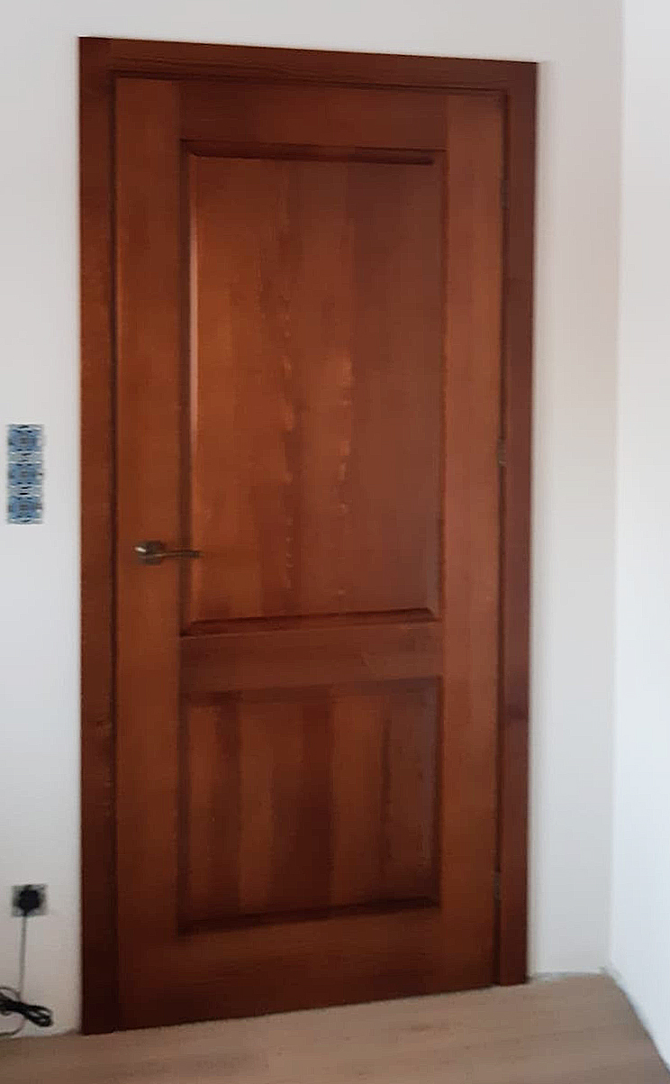 Drzwi drewniane wewnętrzne wykonujemy z drewna klejonego: sosnowego, jesionowego lub dębowego. Wzór dowolny, według wizji klienta. Do produkcji drzwi z szybą używamy szkła mlecznego, hartowanego, fazowanego, piaskowanego.