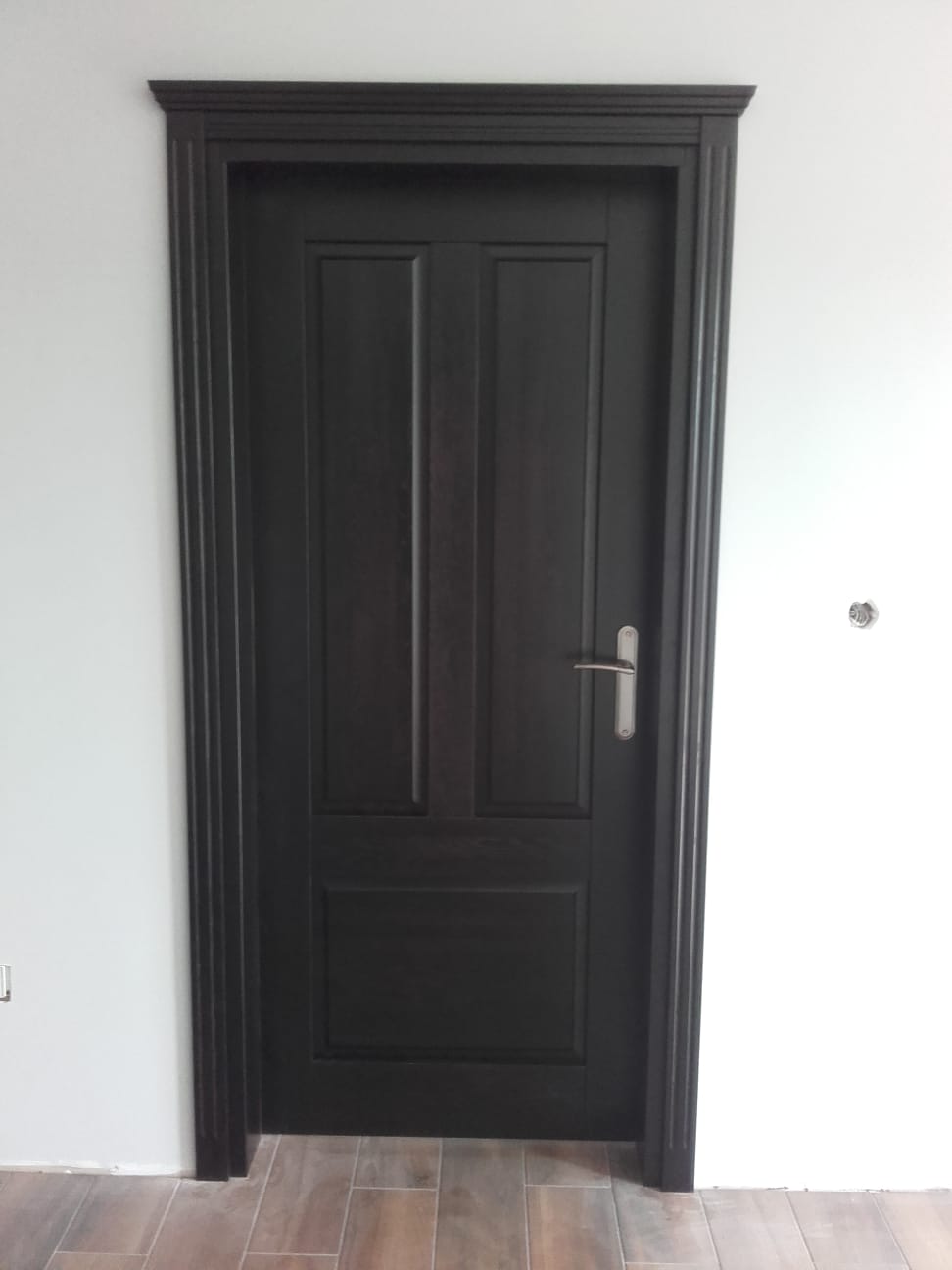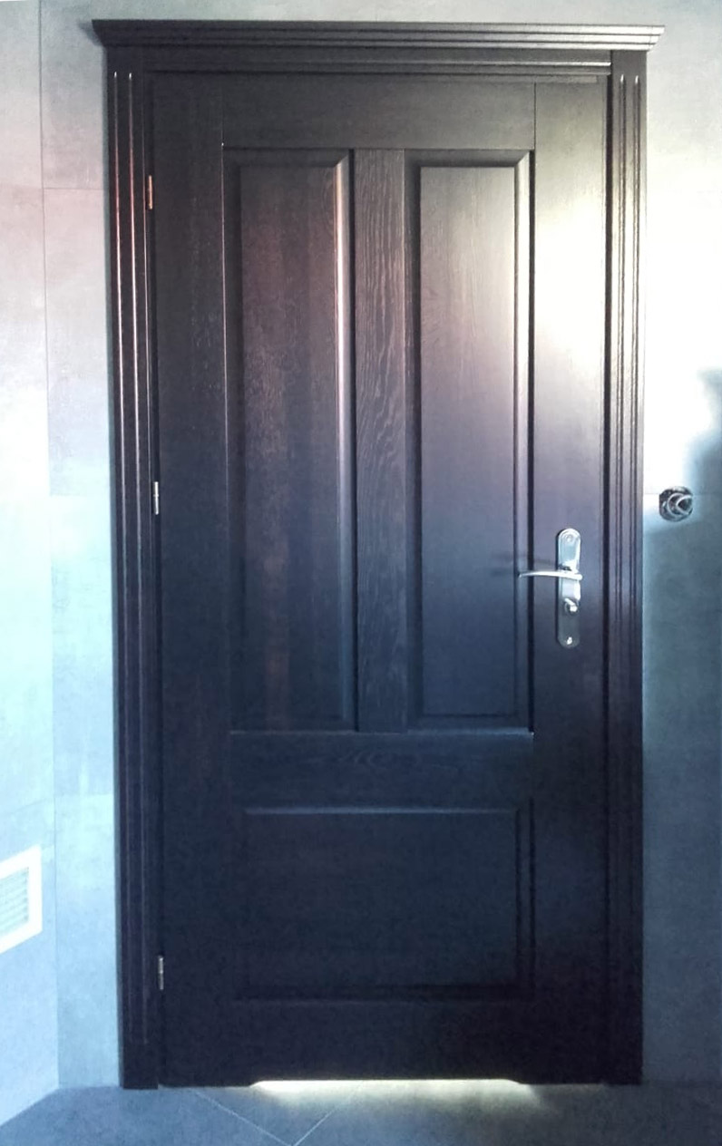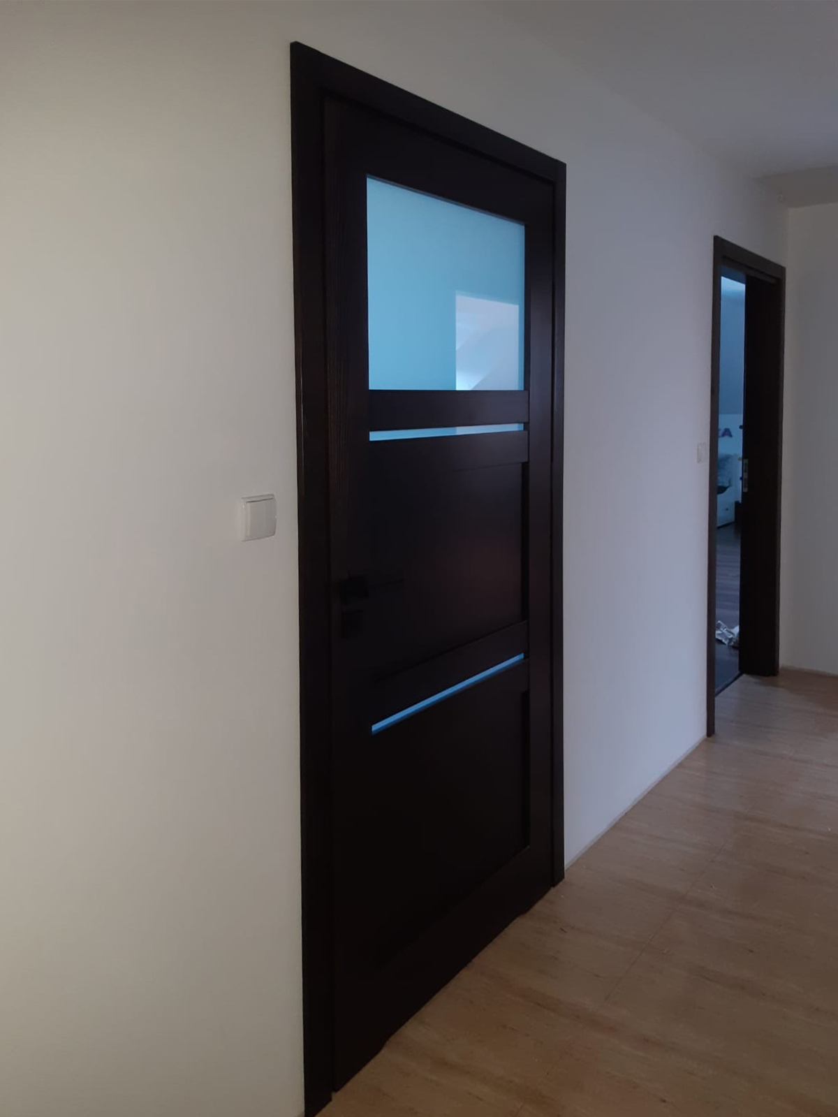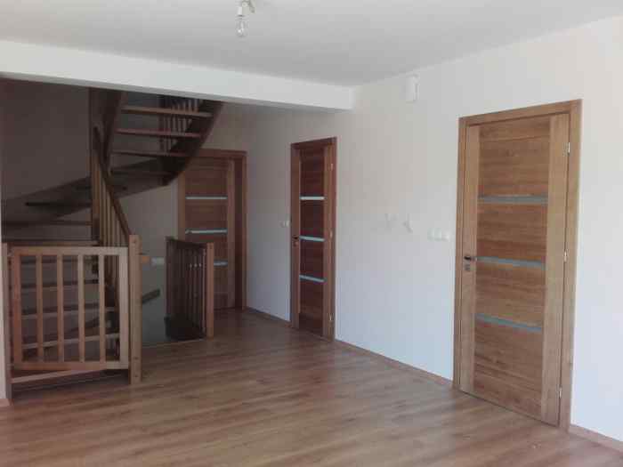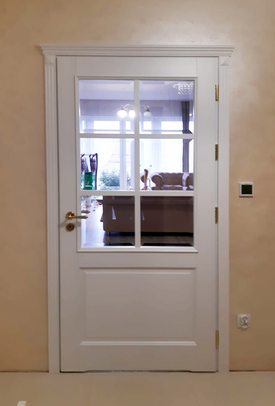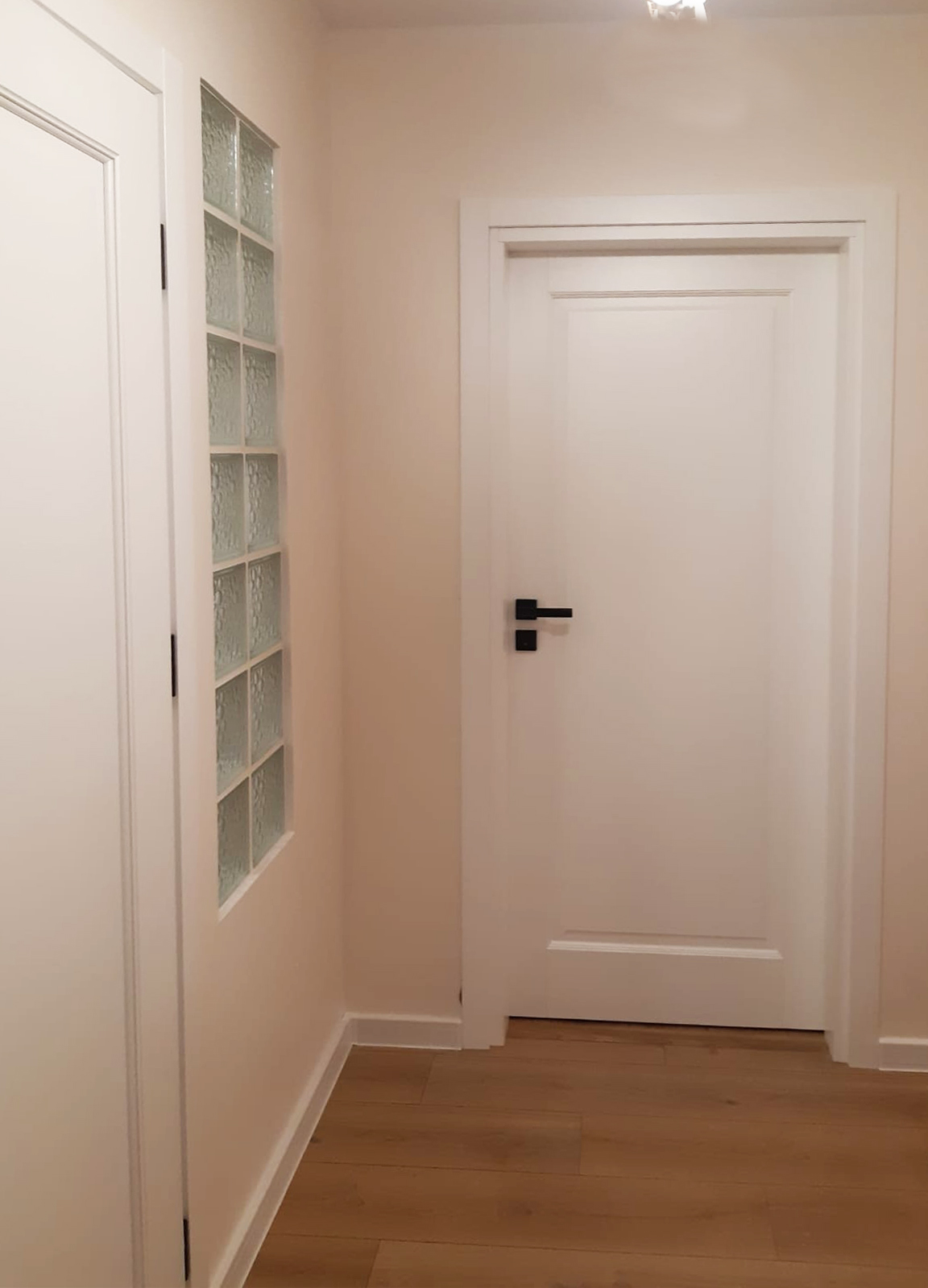 Drzwi drewniane wewnętrzne wykonujemy z drewna klejonego: sosnowego, jesionowego lub dębowego. Wzór dowolny, według wizji klienta. Do produkcji drzwi z szybą używamy szkła mlecznego, hartowanego, fazowanego, piaskowanego.