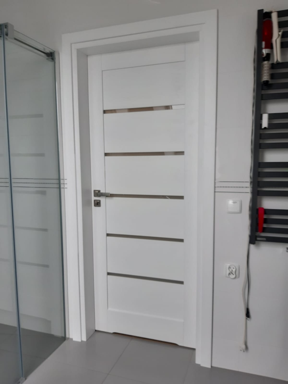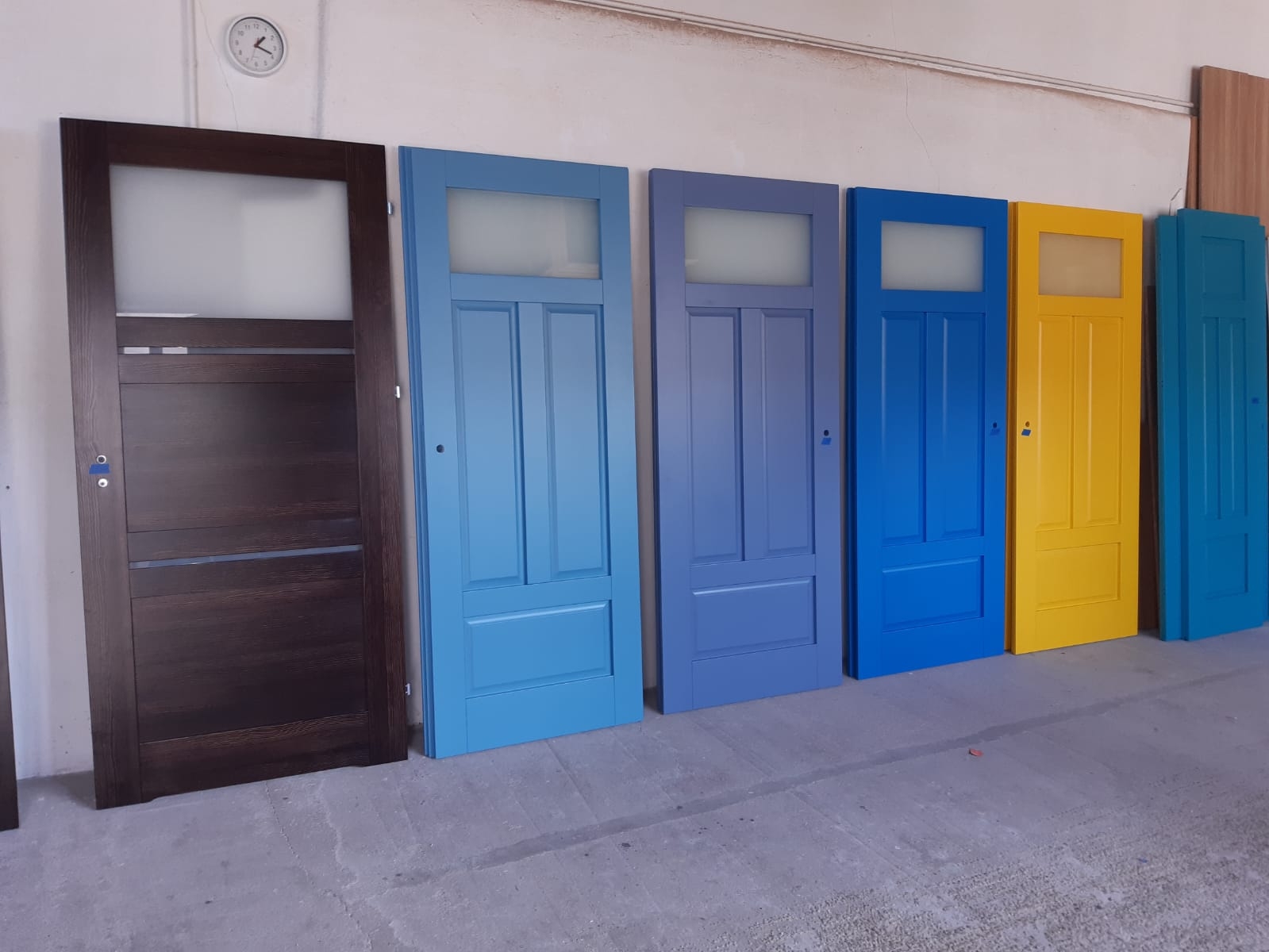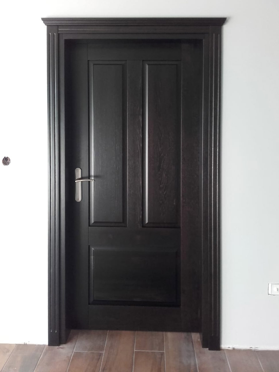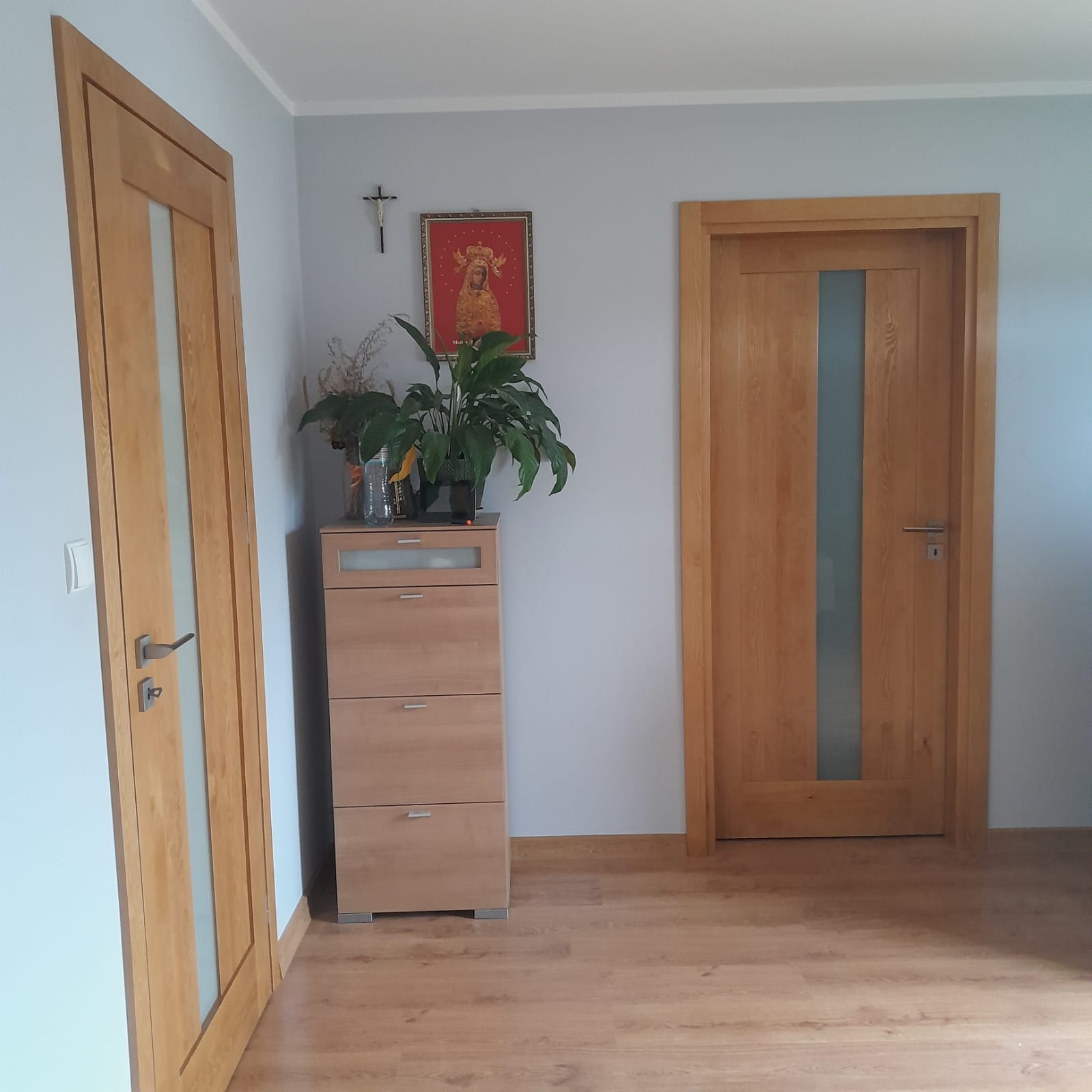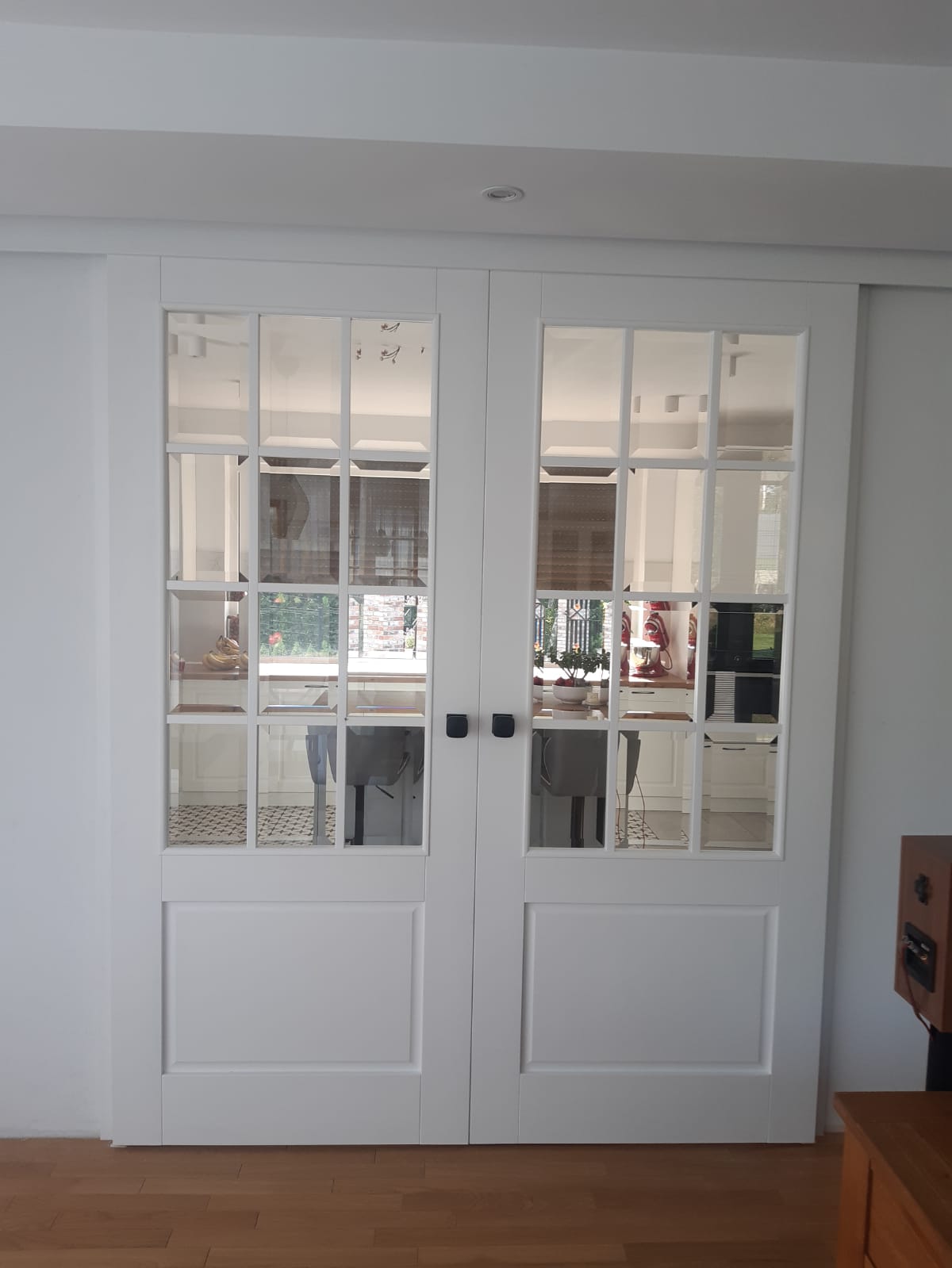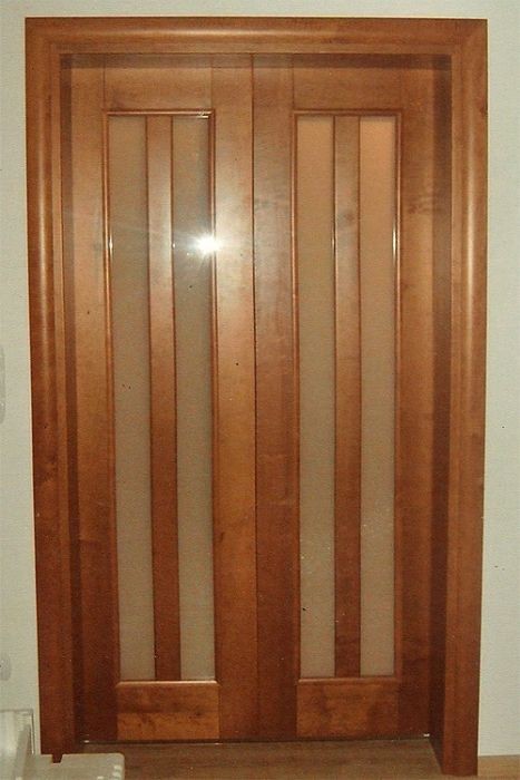 Drzwi drewniane wewnętrzne wykonujemy z drewna klejonego: sosnowego, jesionowego lub dębowego. Wzór dowolny, według wizji klienta. Do produkcji drzwi z szybą używamy szkła mlecznego, hartowanego, fazowanego, piaskowanego.