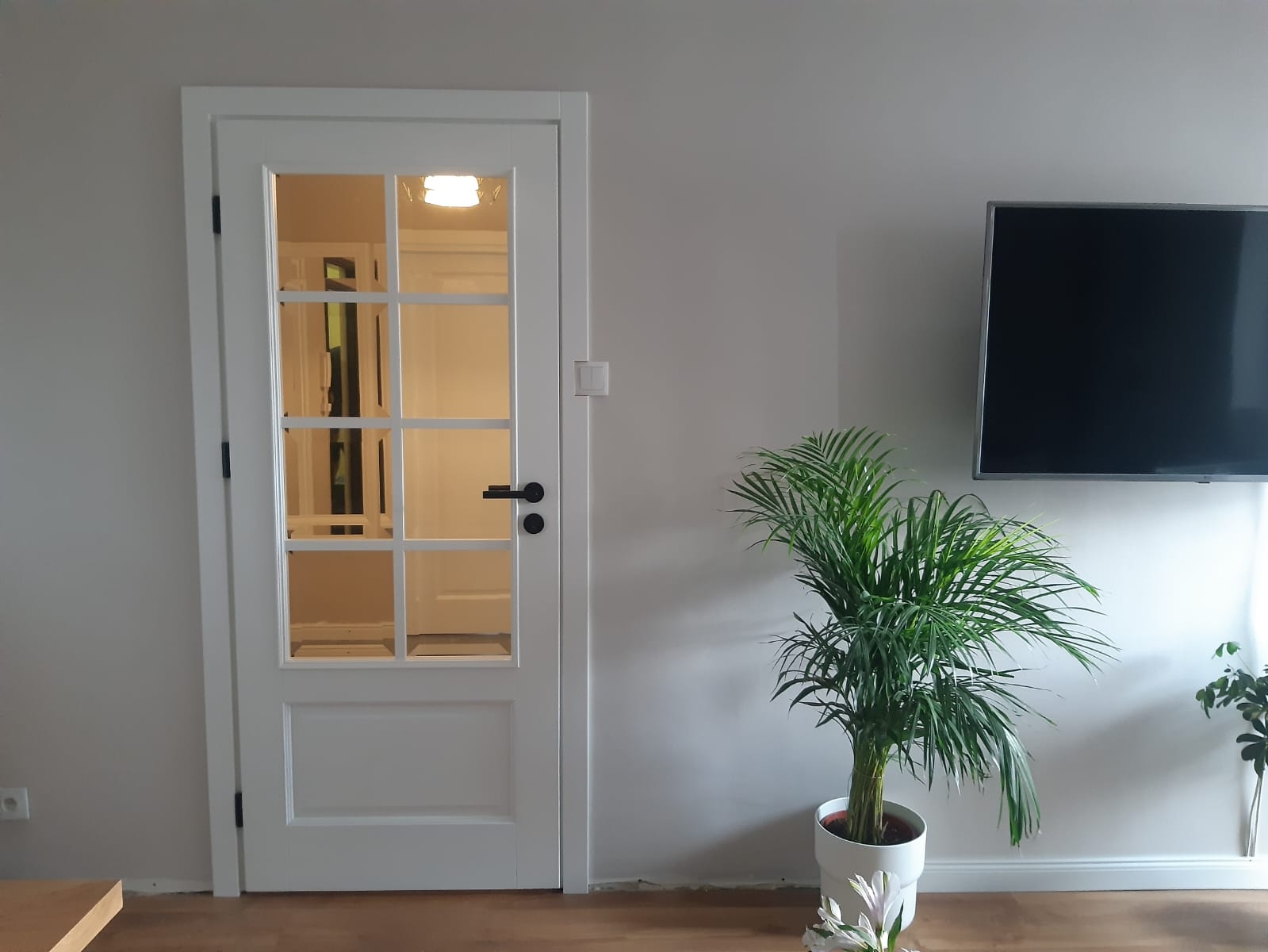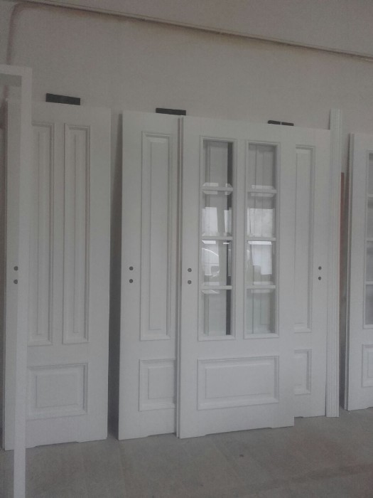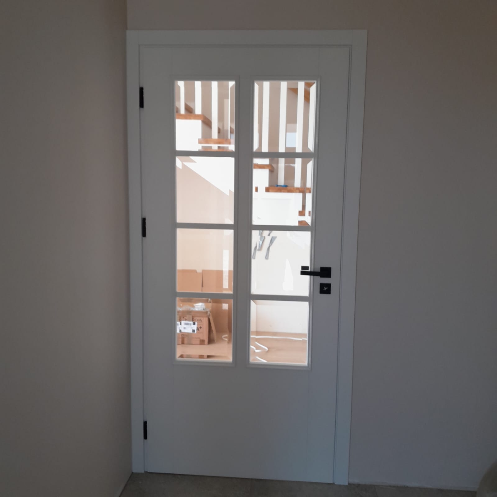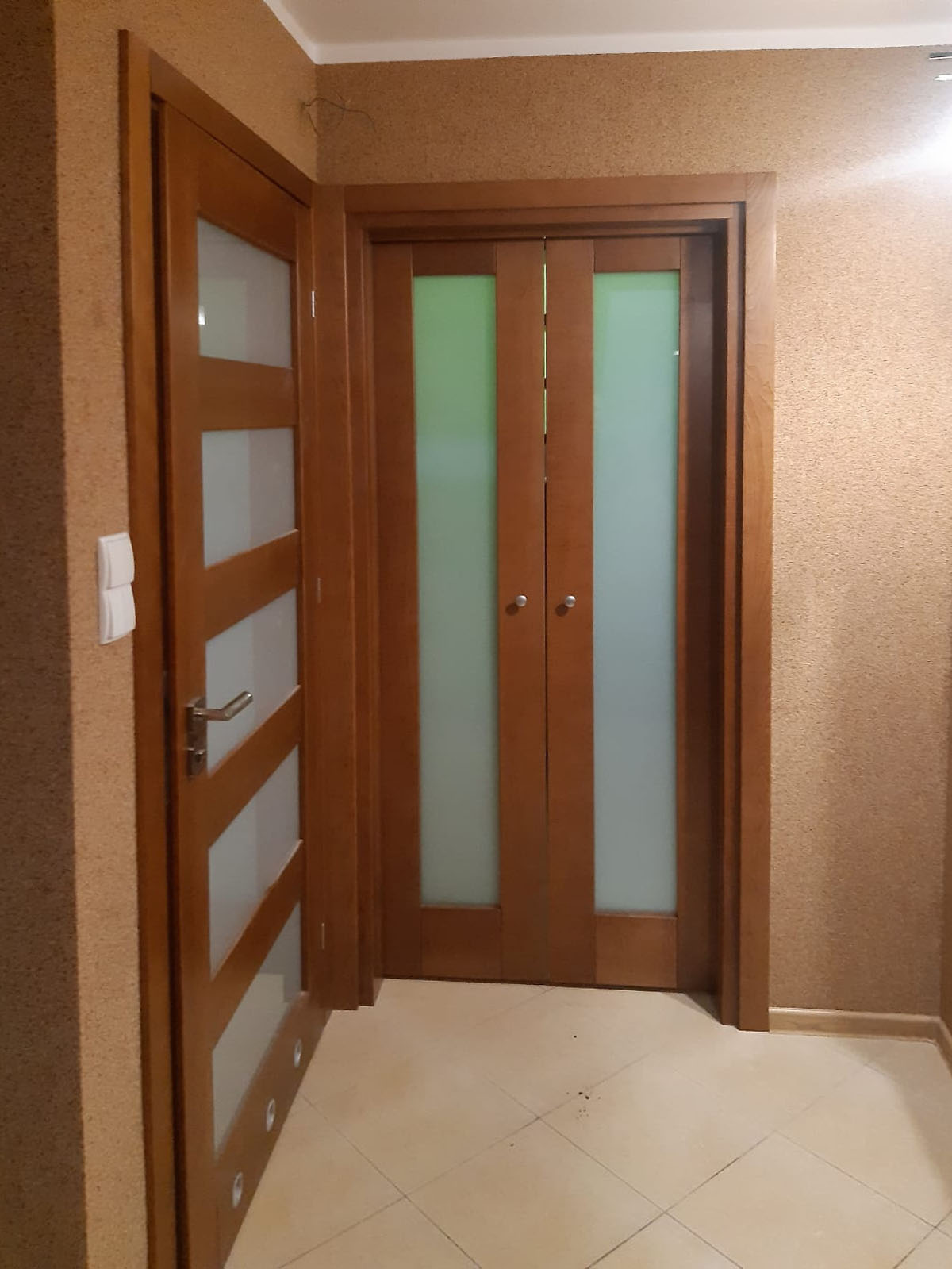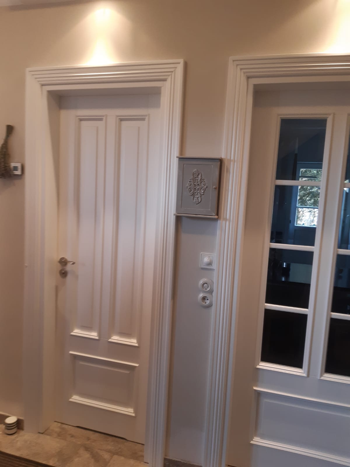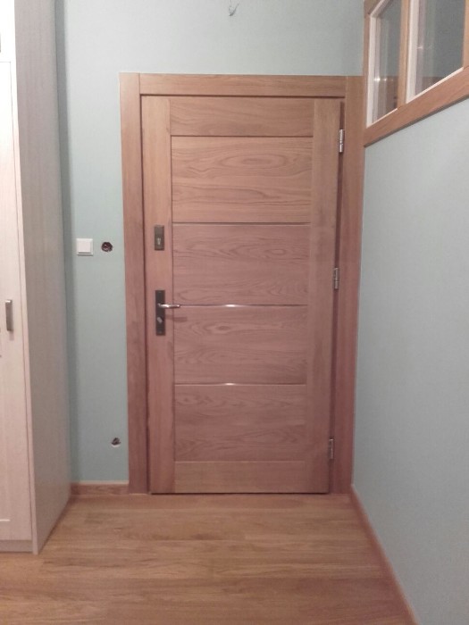 Drzwi drewniane wewnętrzne wykonujemy z drewna klejonego: sosnowego, jesionowego lub dębowego. Wzór dowolny, według wizji klienta. Do produkcji drzwi z szybą używamy szkła mlecznego, hartowanego, fazowanego, piaskowanego.
