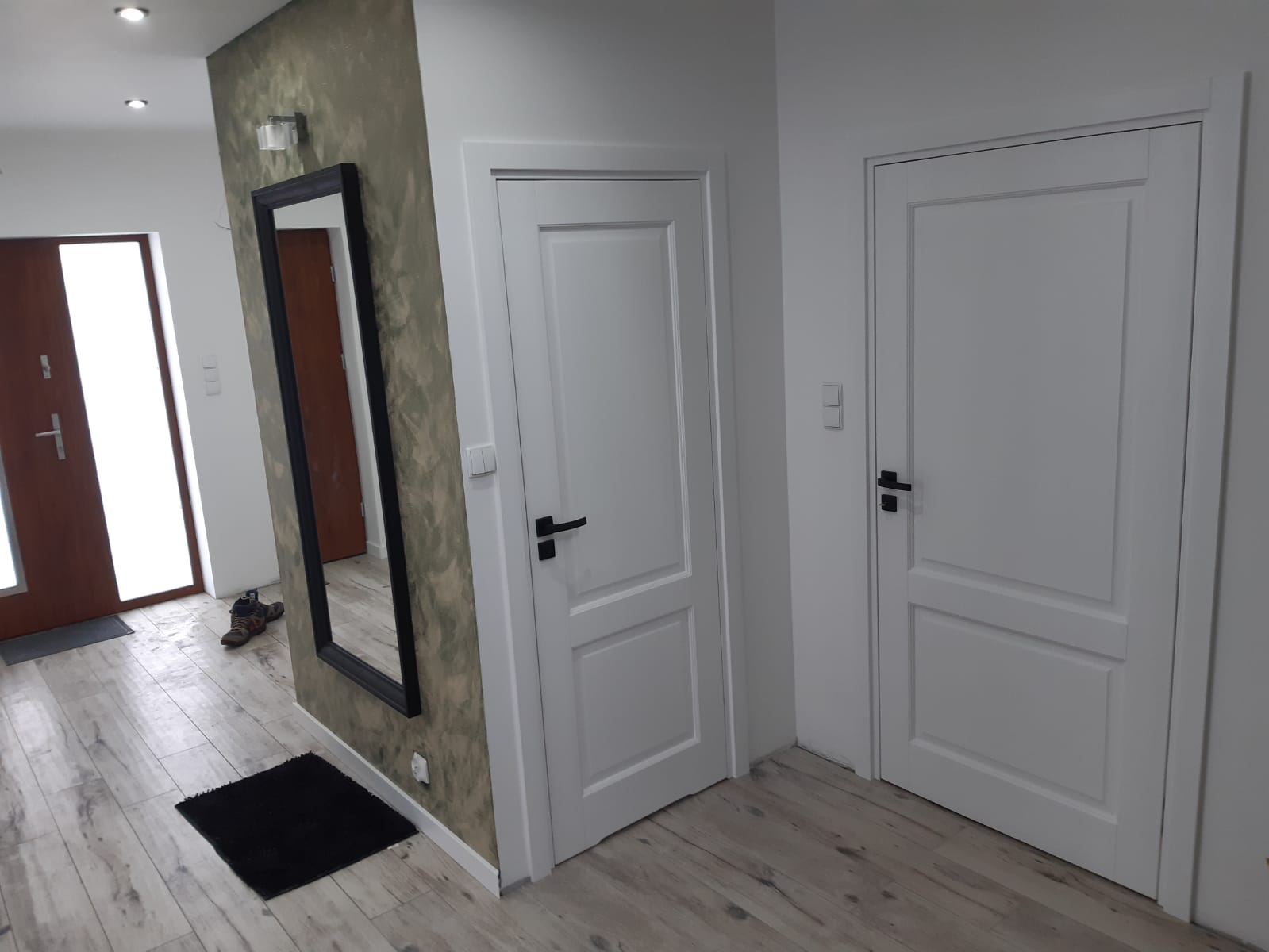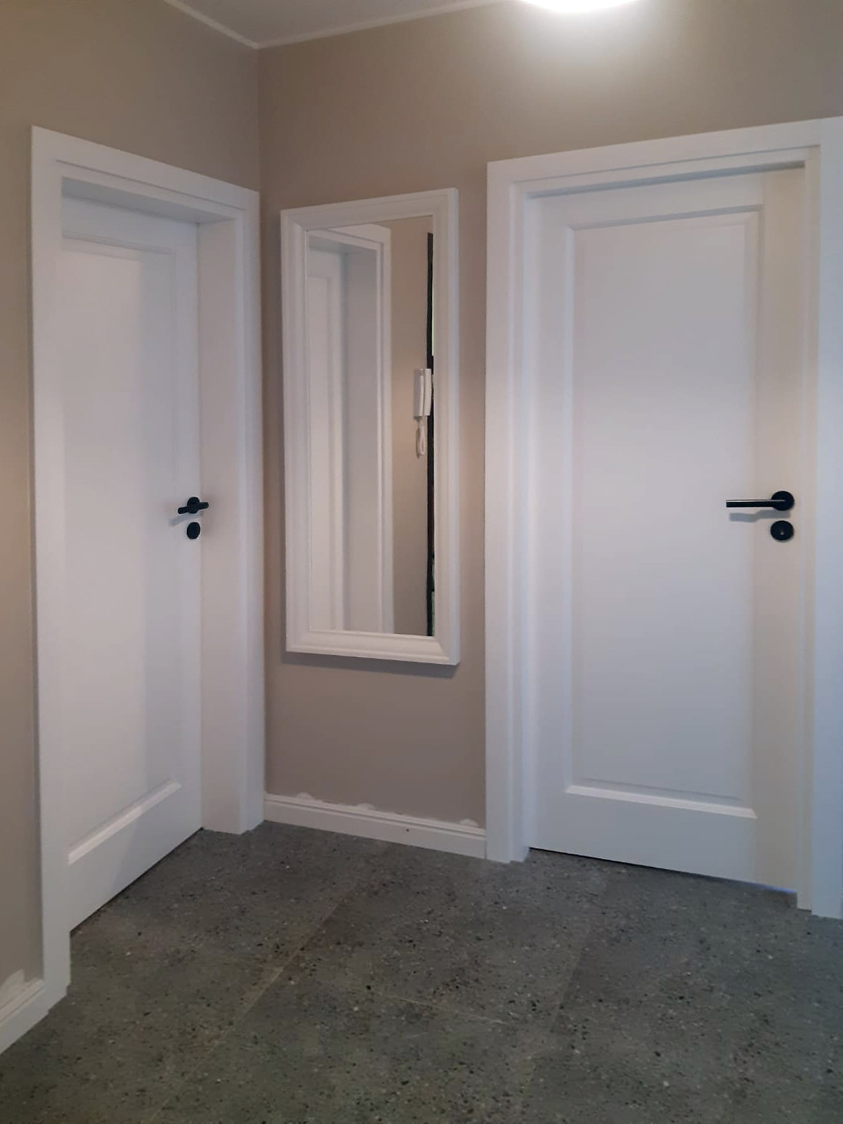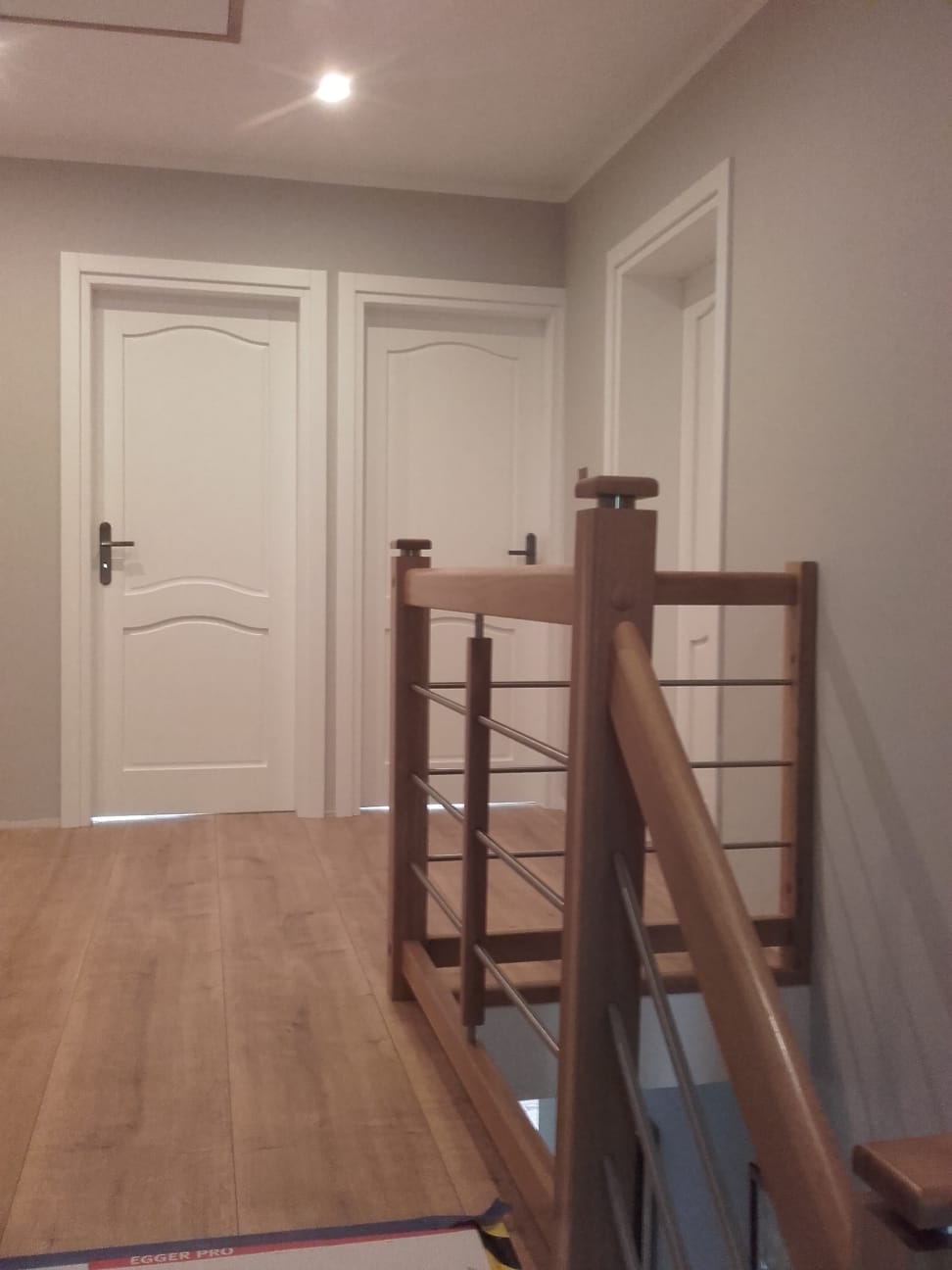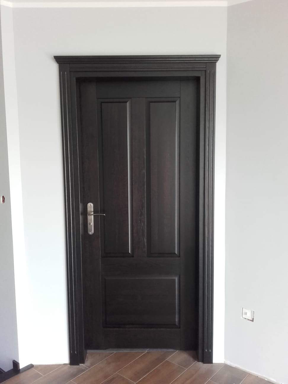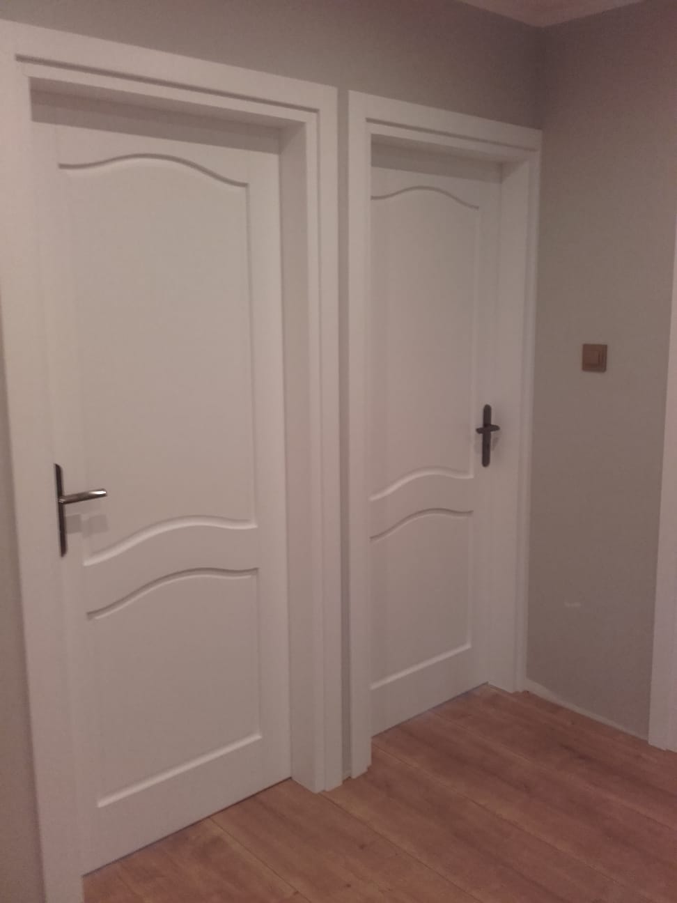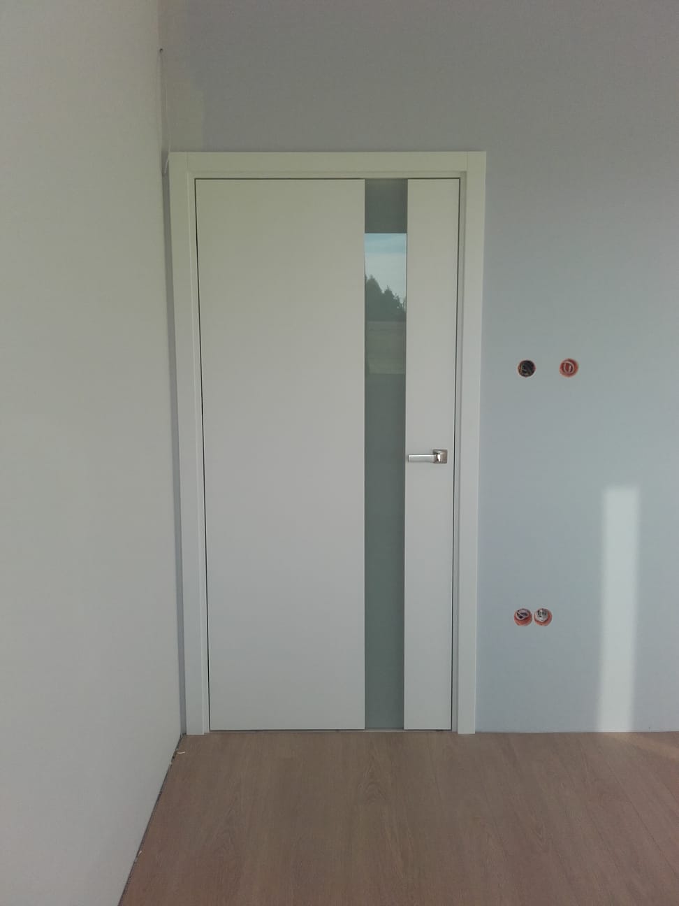 Drzwi drewniane wewnętrzne wykonujemy z drewna klejonego: sosnowego, jesionowego lub dębowego. Wzór dowolny, według wizji klienta. Do produkcji drzwi z szybą używamy szkła mlecznego, hartowanego, fazowanego, piaskowanego.