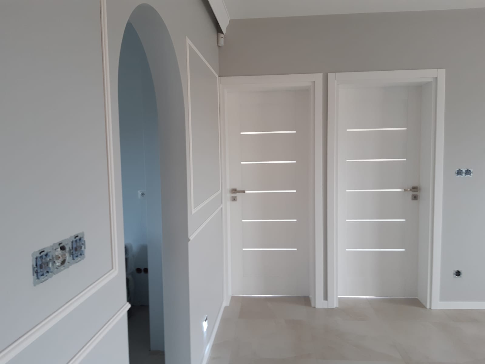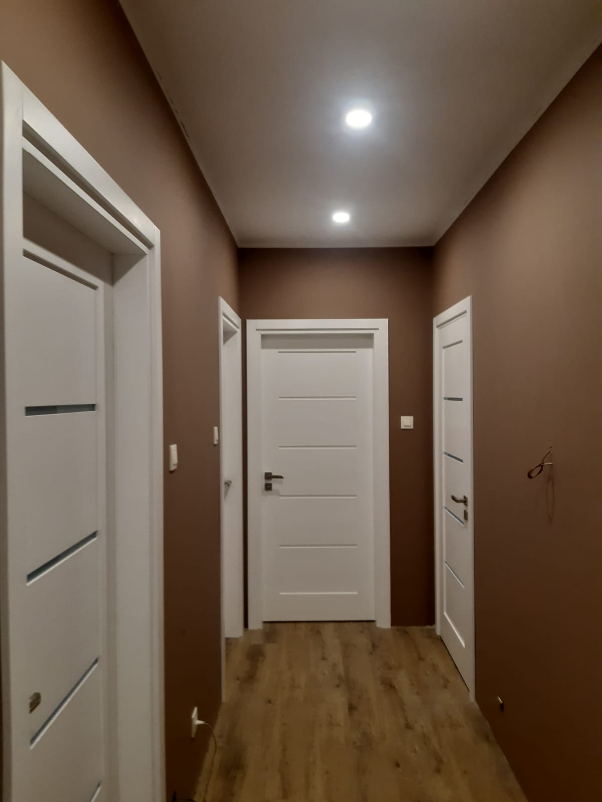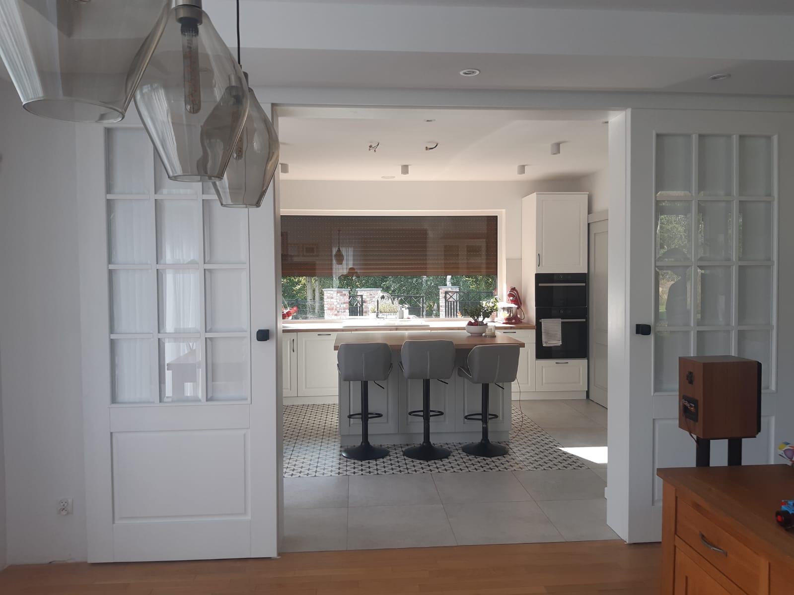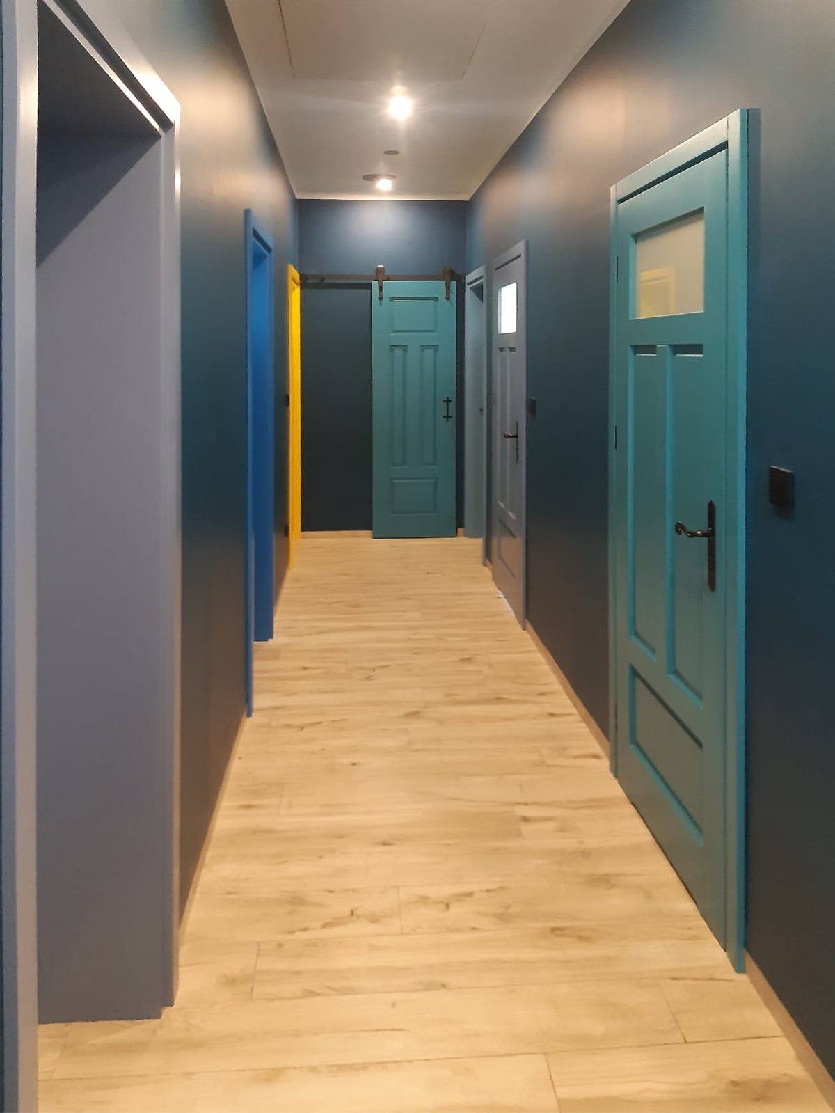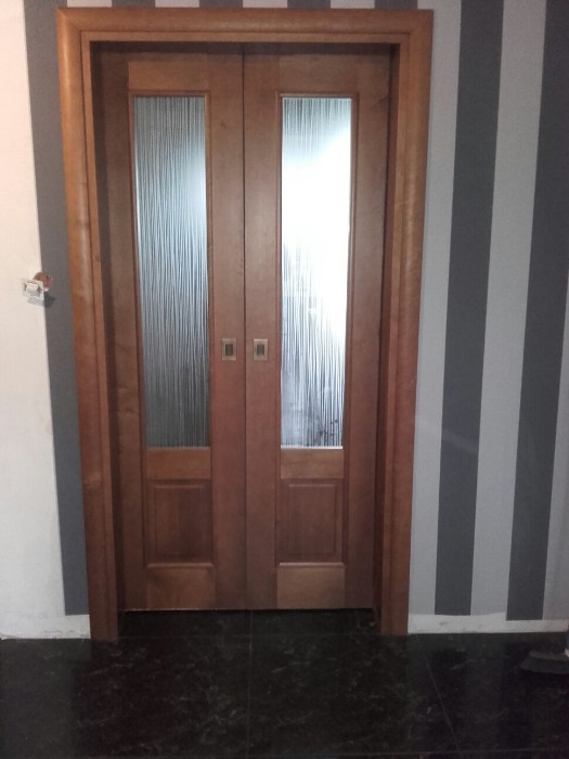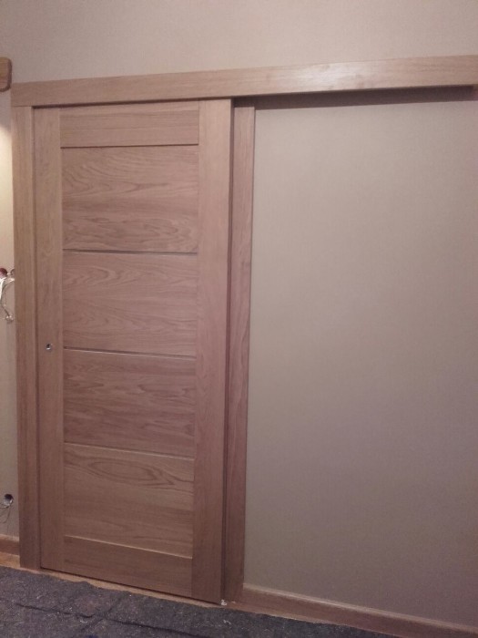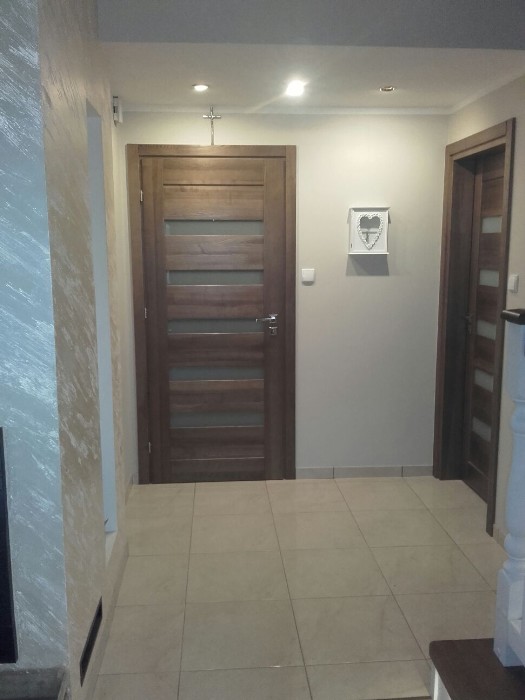Drzwi drewniane wewnętrzne wykonujemy z drewna klejonego: sosnowego, jesionowego lub dębowego. Wzór dowolny, według wizji klienta. Do produkcji drzwi z szybą używamy szkła mlecznego, hartowanego, fazowanego, piaskowanego.